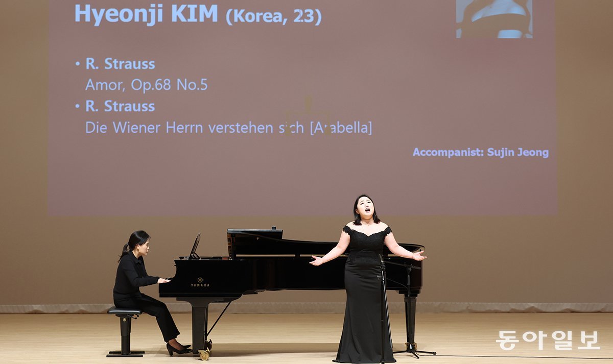 ‘LG와 함께하는 제21회 서울국제음악콩쿠르’가 15일 성악 부문으로 개막한 가운데 1차 예선에 참가한 김현지 씨(한국)가 서울 종로구 서울아트센터 도암홀에서 심사곡을 부르고 있다. 15, 16일 이틀간 열리는 1차 예선에는 예비심사를 통과한 10개국 55명이 무대에 오른다.