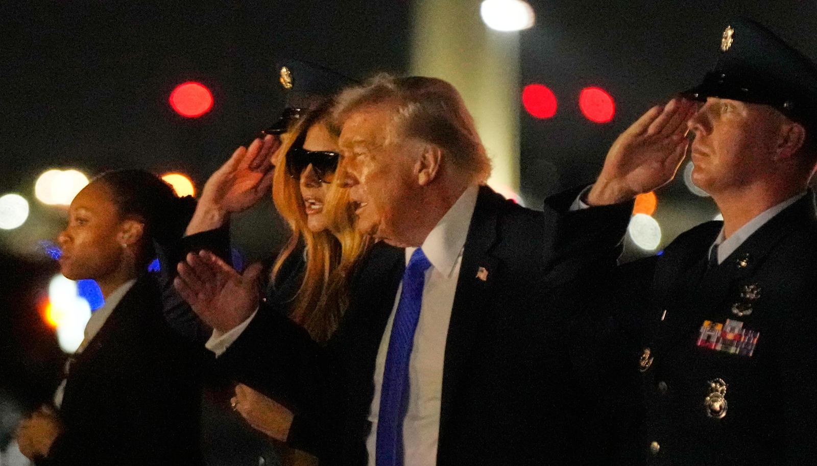 도널드 트럼프 미국 대통령과 영부인 멜라니아 여사가 13일(현지 시간) 사저 마러라고를 방문하기 위해 플로리다주 팜비치 국제공항에 도착한 뒤 전용기인 에어포스원에서 내리고 있다. 트럼프 대통령은 14일 한국, 일본, 중국, 프랑스, 영국 등 5개국이 호르무즈 해협에 군함을 파견해야 한다고 주장했다. 웨스트팜비치=AP 뉴시스 |