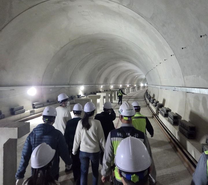 이후 안전 교육을 받고 지하 공사장에 들어가기 전 전문 안전 관리자 안내에 따라 보호구를 착용했다. 실제 시공이 진행 중인 113정거장에서 약 380m 구간 지하 터널을 직접 걸으며 구조물 시공 현장을 눈으로 확인했다.