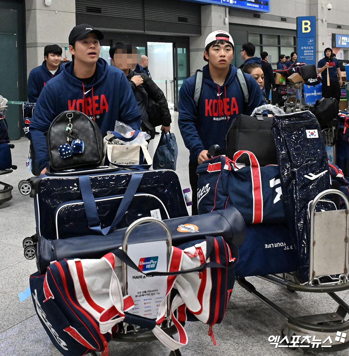야구 대표팀 노시환 문현빈이 입국장을 빠져나가고 있다.