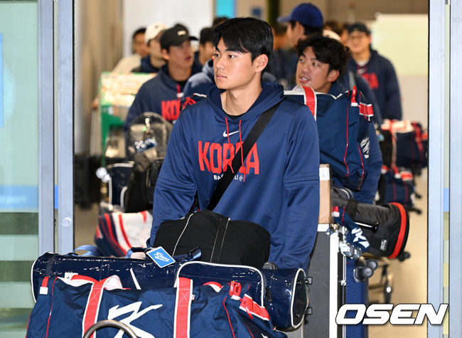 야구 대표팀 김주원이 입국장을 나서고 있다. 2026.03.16 /cej@osen.co.kr