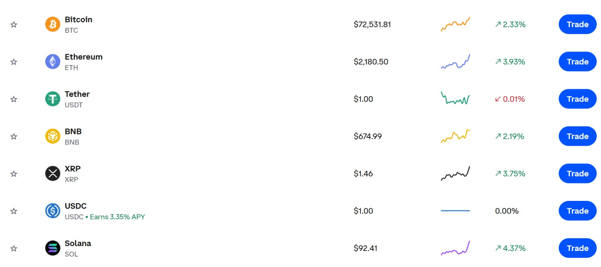 글로벌 가상자산 거래소 코인베이스에 따르면 한국시간 16일 오전 7시 45분 기준 비트코인은 7만2531달러 수준에서 거래되고 있다. 전일 대비 약 2.3% 오른 수준이다.
