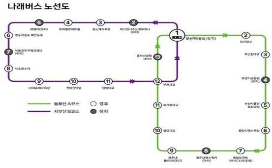 운행은 매주 화·수요일 주 2회로, 부산역을 기점으로 동부산과 서부산 관광지를 순환하는 2개 코스로 운영된다.
