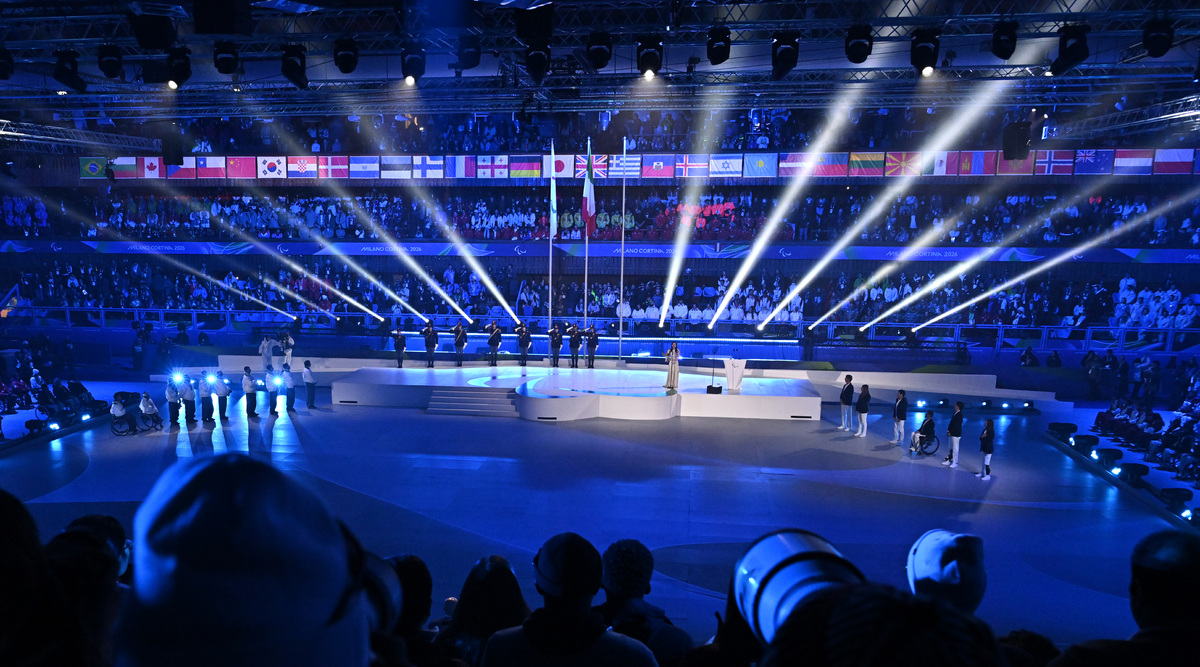 15일(현지시간) 이탈리아 코르티나담페초 컬링 올림픽 스타디움에서 열린 2026 밀라노 코르티나 패럴림픽 폐막식에서 이탈리아 국기가 게양되고 있다. 코르티나(이탈리아)=김두홍 기자 kimdh@sportsworldi.com 2026.03.16.