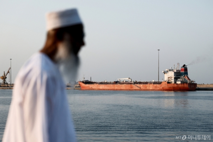호르무즈 해협이 봉쇄된 가운데, 12일(현지시간) 오만 무스카트의 술탄 카부스 항에 칼리스토 유조선이 닻을 내리고 정박해 있다. /사진=뉴스1(로이터) |