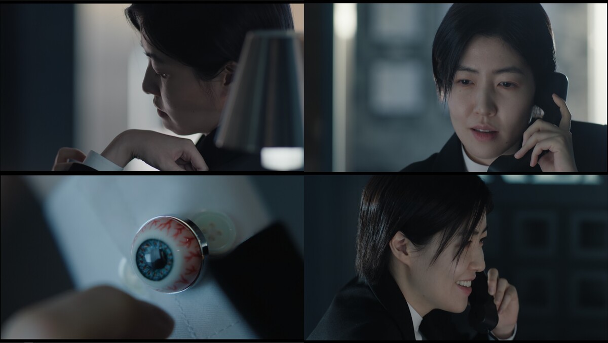 특히 1화에서는 심은경이 직접 아이디어를 낸 요나 캐릭터의 치밀한 디테일이 시선을 사로잡았다. 기수종(하정우 분)에게 건물 점유를 압박하며 통화하는 장면에서 포착된 요나의 오른쪽 셔츠 커프스가 대표적이다. 핏발 선 기괴한 눈동자 장식의 이 소품은 영화 ‘시계태엽 오렌지’에서 가져온 레퍼런스로, 심은경이 직접 제안한 장치다.