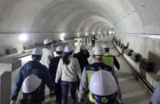 참가자들은 노원구 하계동 113정거장 상황실에서 전체 공정 설명을 들은 뒤 안전교육과 보호구 착용을 거쳐 실제 시공 중인 113정거장 현장으로 이동했다. 이어 약 380m 구간의 지하 터널을 직접 걸으며 구조물 시공 현장을 확인했다.
