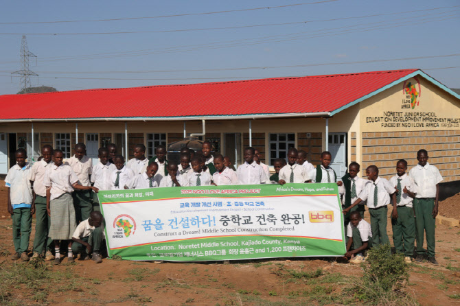BBQ가 본사와 가맹점의 참여형 사회공헌활동인 '아이러브아프리카'를 통해 올해 1월 케냐에 노레텟 중학교를 건립했다.(사진=BBQ 제공) |