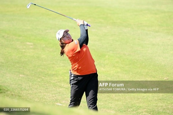 (일본=국제뉴스) 윤지호 기자 = 15일(현지시간) 일본의 이리야 히비키 선수가 대만 폭스콘 여자 골프 토너먼트 최종 라운드 18번 홀에서 세 번째 샷을 날리고 있다.