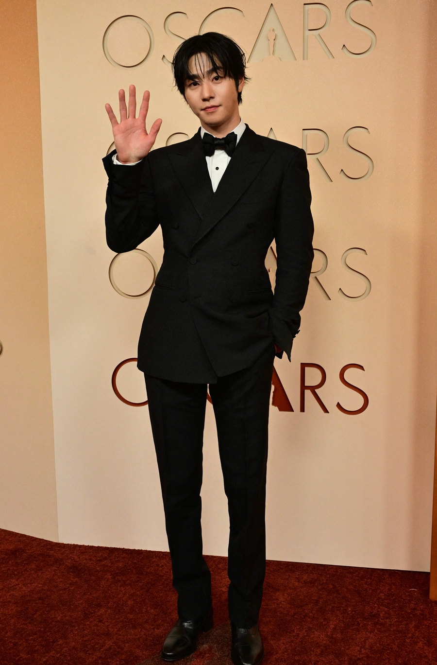턱시도에 나비넥타이 차림으로 레드카펫에 오른 안효섭은 생애 첫 아카데미 레드카펫에서 가벼운 미소를 지으며 나타나 가볍게 손을 흔들어 팬들에게 인사하며 설렘과 긴장을 즐겼다.