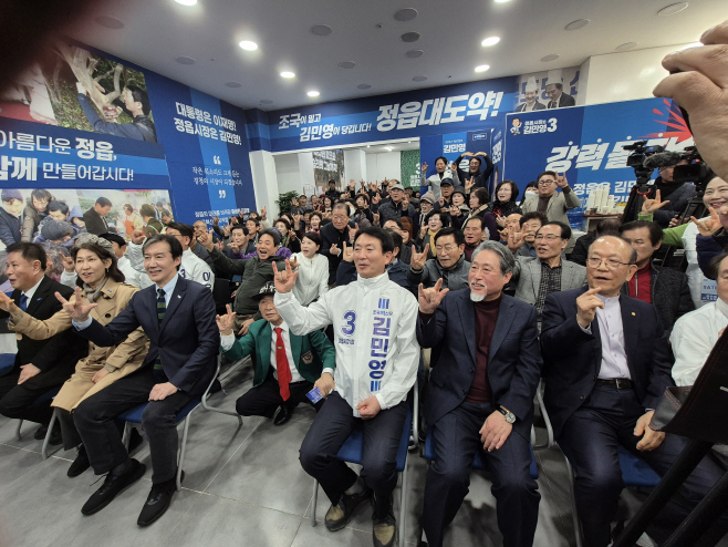 선거사무소에서는 김민영 후보와 조국 대표가 지역발전의 소망을 담은 '사발통문 부착식'을 갖고 발송하는 퍼포먼스를 연출했다.