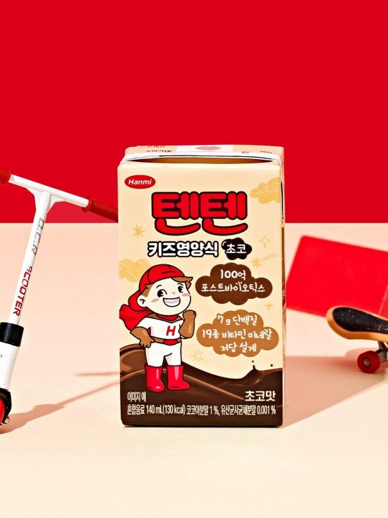 텐텐 키즈영양식은 성장기 어린이에게 필요한 탄수화물, 단백질, 지방 등 3대 영양소를 균형 있게 담은 제품이다. 19종의 비타민과 미네랄은 물론 두뇌 구성 성분인 EPA와 DHA도 1일 권장량의 10% 수준으로 함유했다. 당 함량은 2g으로 낮췄고, 완전 단백질 7g을 담아 간식이나 영양 보충용으로 부담 없이 섭취할 수 있도록 설계했다. 포스트바이오틱스 100억셀을 함유했으며 어린이 기호식품 품질인증을 획득해 안전성을 확보했다.