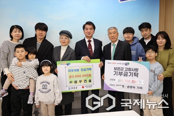 (보은=국제뉴스) 이재기 기자 = ㈜삼우건설 이국현 대표 가족이 16일 보은군청을 방문해 고향사랑기부금과 이웃돕기 성금을 기탁했다.