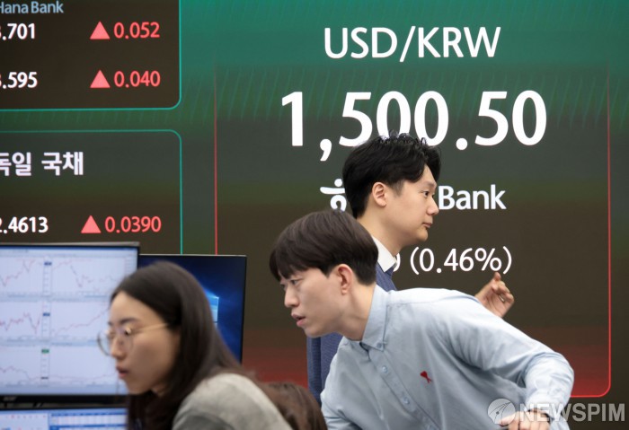 [서울=뉴스핌] 이건주 인턴기자 = 달러/원 환율이 전 거래일 주간거래 종가보다 7.3원 오른 1501.0원에 개장한 16일 오전 서울 중구 하나은행 딜링룸에서 직원들이 업무를 보고 있다. 2026.03.16 kunjoo@newspim.com