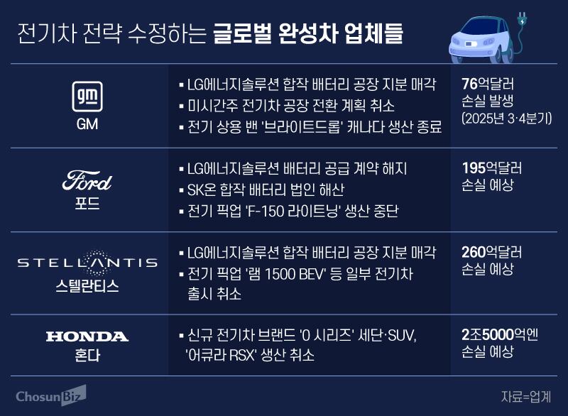 전기차 전략의 후퇴로 인해 대규모 손실을 떠안는 기업은 더 있다. GM은 미시간주 공장에서 전기차 생산을 중단하고, 내연기관차 조립 라인으로 전환하면서 설비 관련 비용이 발생했다. 여기에 전기 상용 밴 ‘브라이트드롭’의 캐나다 생산도 종료하면서 지난해 3~4분기에만 76억달러 손실이 발생했다.