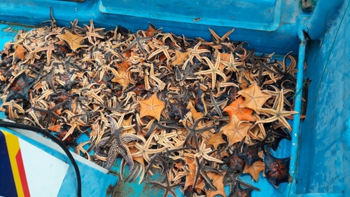 연안 어장에서 포획한 불가사리 |