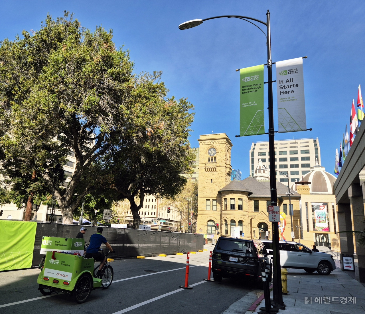 [헤럴드경제(실리콘밸리)=김현일 기자] 세계 최대 인공지능(AI) 이벤트 ‘엔비디아 GTC 2026’ 개막을 하루 앞둔 15일(현지시간) 미국 캘리포니아주 새너제이 일대는 벌써부터 축제 분위기가 물씬 풍겼다. 거리 곳곳은 엔비디아를 상징하는 네온그린 색상으로 뒤덮여 장관을 이루고 있었다.