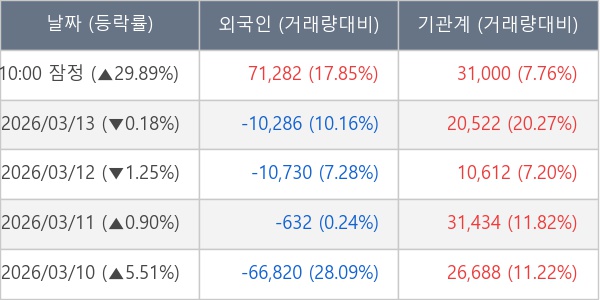 [표] 주요 기관별 순매매량 (단위 주)