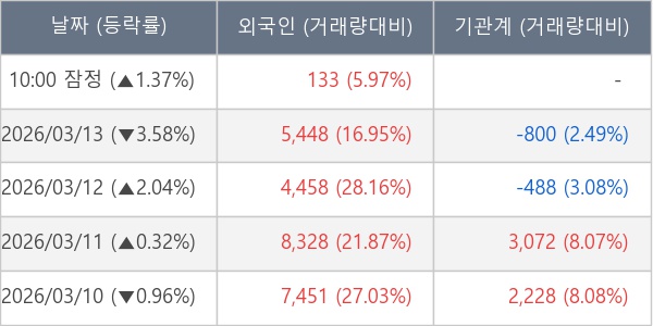 [표] 외국인ㆍ기관 순매매량 (단위 주)