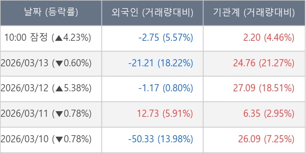 [표] 외국인ㆍ기관 순매매량 (단위 만주)
