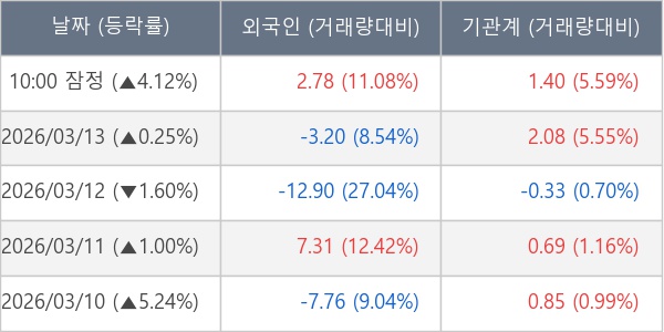 [표] 주요 기관별 순매매량 (단위 만주)