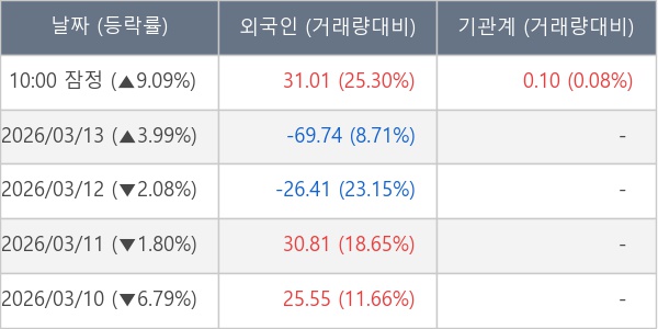 [장중수급포착] 누보, 외국인/기관 동시 순매수… 주가 +9.09%