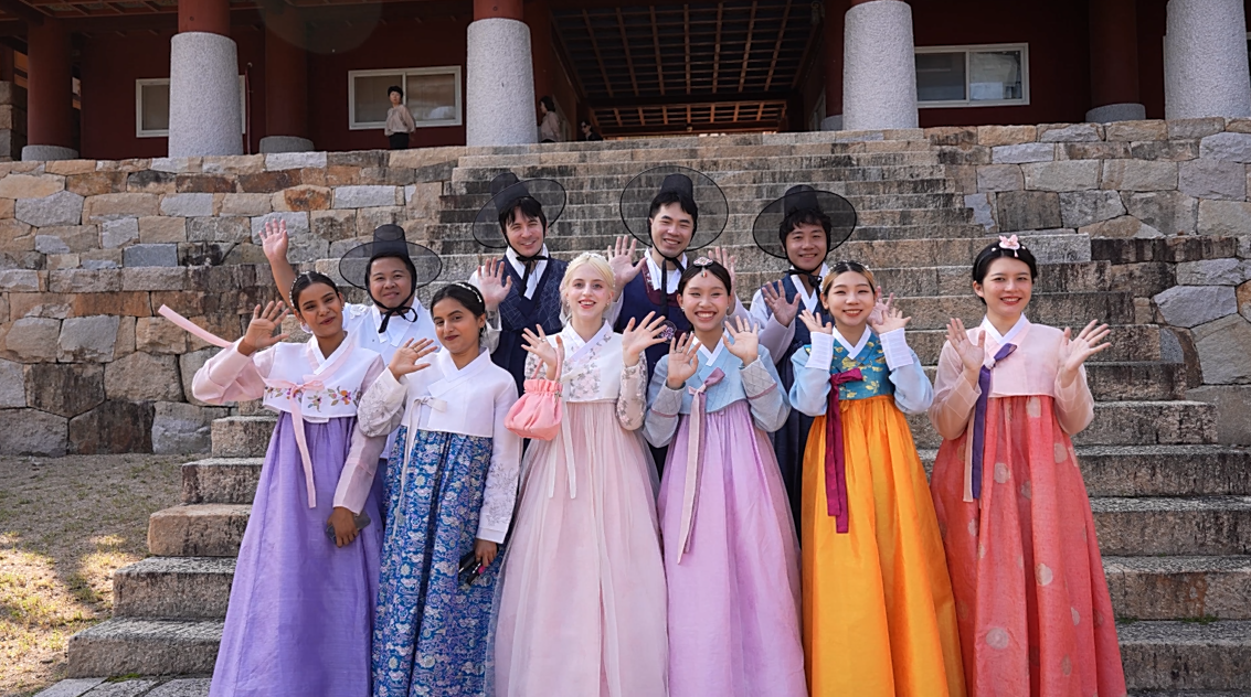 지난해 9월 한복을 입은 외국인 관광객들이 부산 금정구 범어사를 방문해 기념 사진을 찍고 있다. 부산시 제공 |