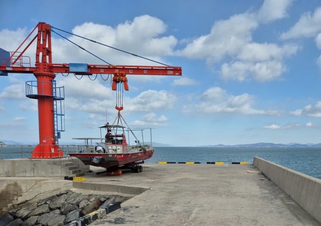 장흥군 관산읍 삼산항 선박 인양기. |