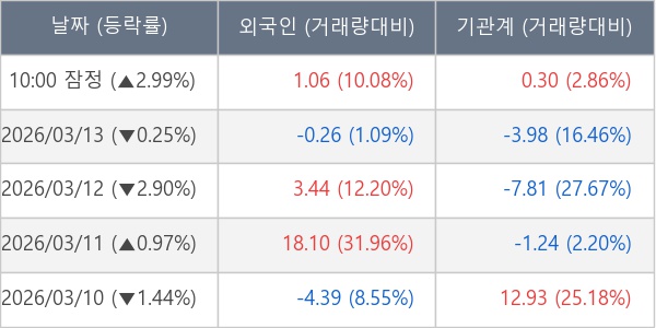 [표] 외국인ㆍ기관 순매매량 (단위 만주)