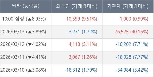 [표] 주요 기관별 순매매량 (단위 주)