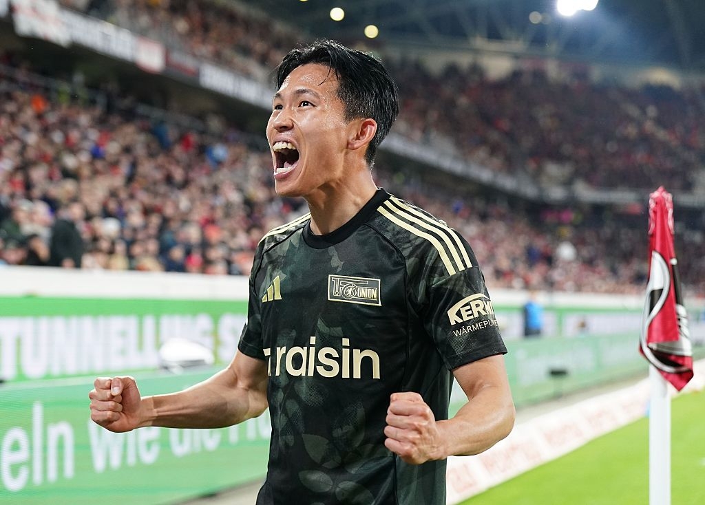 우니온 베를린 정우영이 16일 프라이부르크전에서 후반 추가시간 결승골을 넣은 뒤 환호하고 있다. Getty Images코리아 |