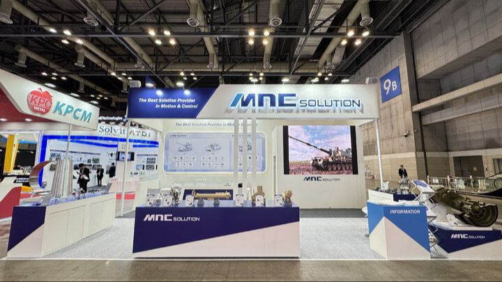 엠앤씨솔루션이 한화에어로스페이스에 183억 규모의 폴란드 천무 발사대 부품을 공급한다. 사진은 지난해 ADEX에 참석한 엠앤씨솔루션 부스 모습. 엠씨솔루션 제공 |