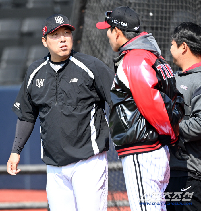 16일 수원KT위즈파크에서 열린 LG와 KT의 시범경기. KT 김현수가 LG 모창민 코치와 인사를 나누고 있다. 수원=허상욱 기자wook@sportschosun.com/2026.03.16/ |
