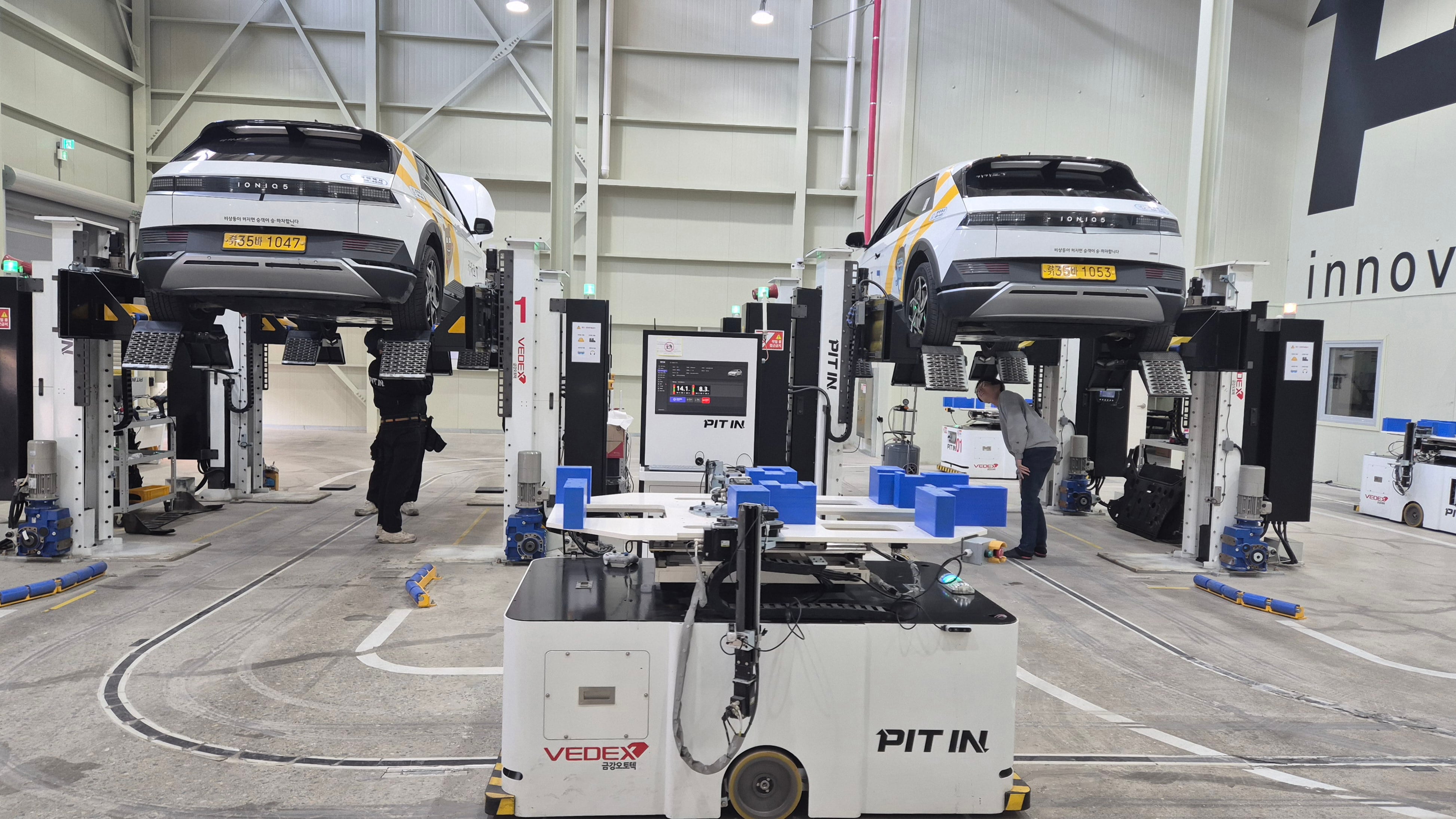 경기 안양시의 피트인 스테이션에서 아이오닉5 택시의 배터리팩 교체 작업이 진행되고 있다. /조선비즈 DB |