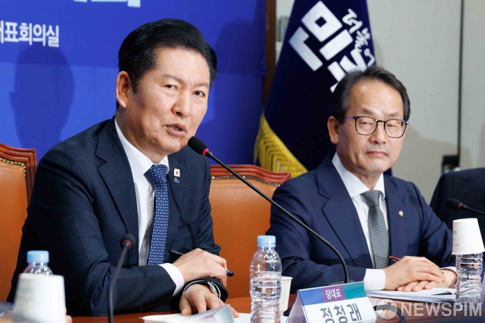 [서울=뉴스핌] 윤창빈 기자 = 정청래 더불어민주당 대표가 16일 오전 서울 여의도 국회에서 열린 시·도당위원장협의회 회의에서 모두발언을 하고 있다. 2026.03.16 panbin@newspim.com