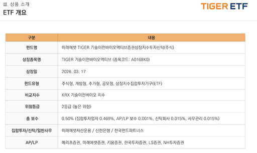 미래에셋자산운용 17일 ‘TIGER 기술이전바이오액티브 ETF’ 상장