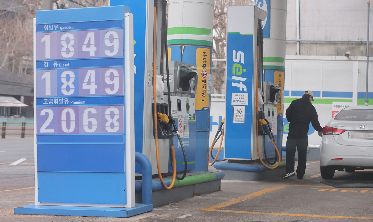 석유 최고가격제 시행 후 첫 주말인 15일 서울 시내 한 주유소를 찾은 시민이 주유를 하고 있다. [연합] |