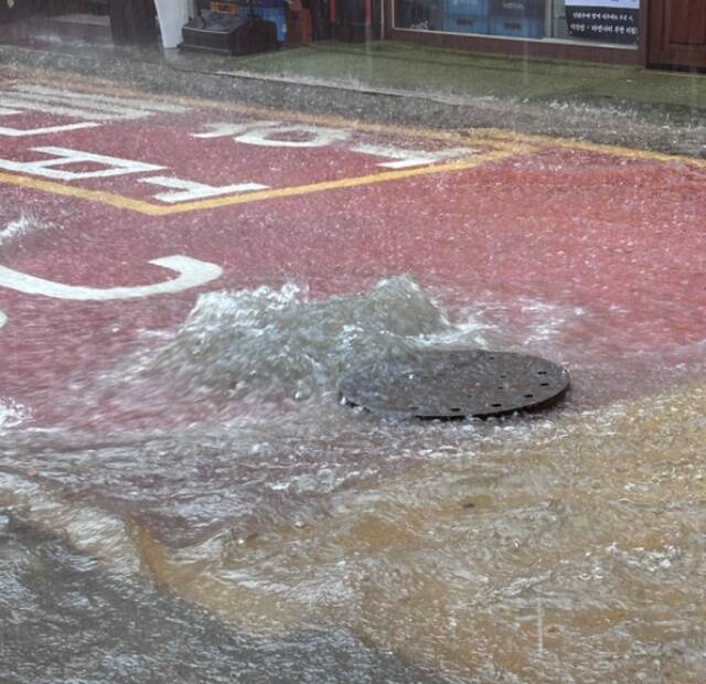 서울 구로구가 집중호우로 인한 침수 피해를 줄이기 위해 시비 117억 원을 확보해 노후 하수관로 정비 등 11개 하수도 개선 사업을 추진한다. 사진은 집중호우 시 맨홀에서 하수가 역류하는 모습. /구로구 |