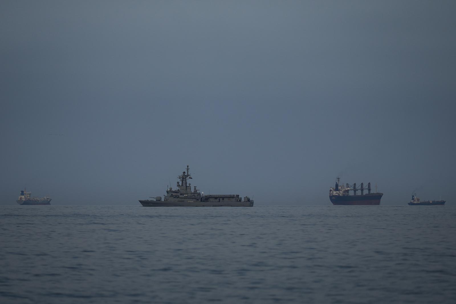 11일(현지 시간) 아랍에미리트(UAE) 코르파칸에서 바라본 호르무즈 해협의 모습. UAE 해군 함정이 화물선과 유조선 옆에서 순찰하고 있다. 호르무즈=AP/뉴시스 |