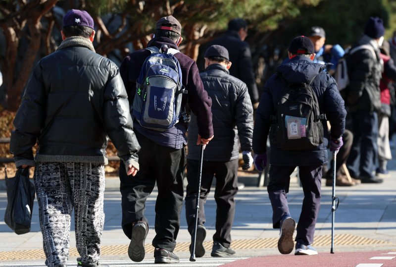 서울 종로구에서 노인들이 이동하고 있다. 뉴스1 |