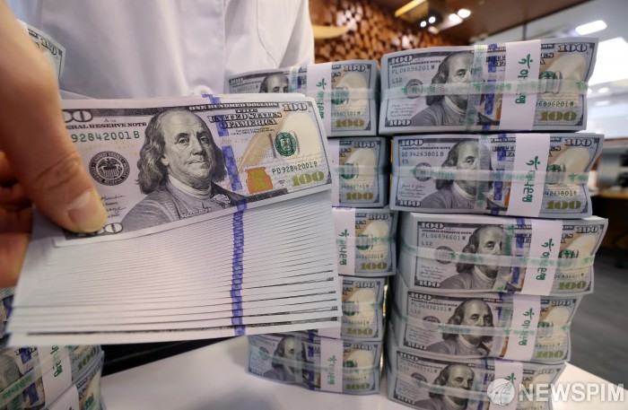 [서울=뉴스핌] 정일구 기자 = 미국-이란 전쟁 여파로 16일 서울 외환시장에서 달러/원 환율이 전 거래일 주간 거래 종가보다 7.3원 오른 1501.0원으로 출발했다. 환율 개장가가 1500원을 넘어선 것은 금융위기 당시인 2009년 3월 10일 이후 약 17년 만이다. 사진은 이날 서울 중구 하나은행 위변조대응센터에서 직원이 달러화를 정리하는 모습. 2026.03.16 mironj19@newspim.com