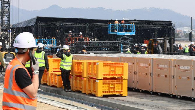 [이데일리 방인권 기자] 16일 서울 광화문광장에 방탄소년단(BTS)의 컴백 라이브 공연 무대가 설치되고 있다.