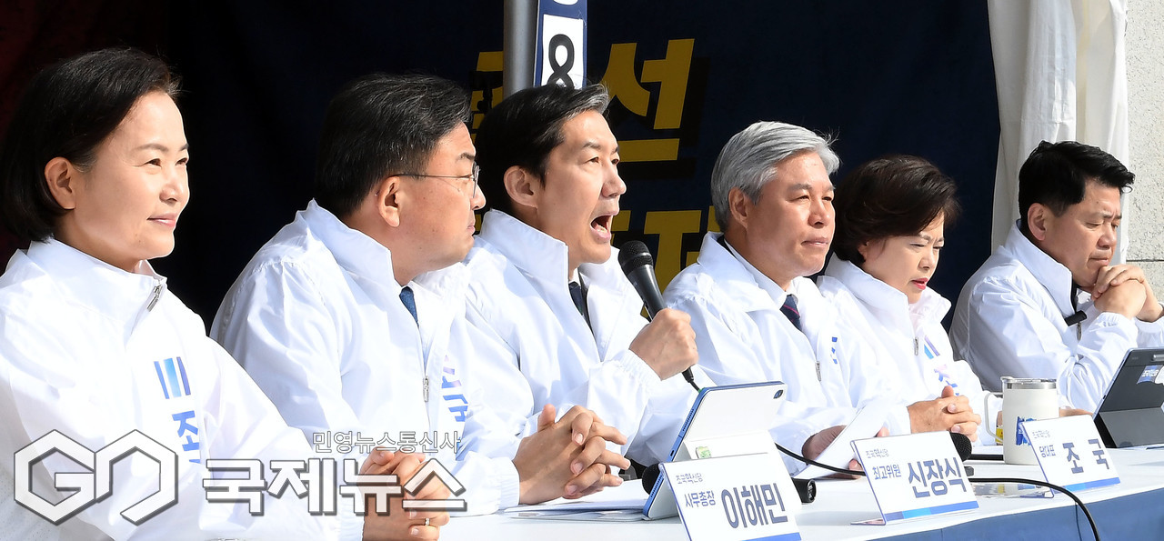 (서울=국제뉴스) 조국 조국혁신당 대표가 16일 서울 여의도 국회 본관 앞 농성장에서 열린 최고위원회의에서 발언하고 있다./사진=이용우 기자