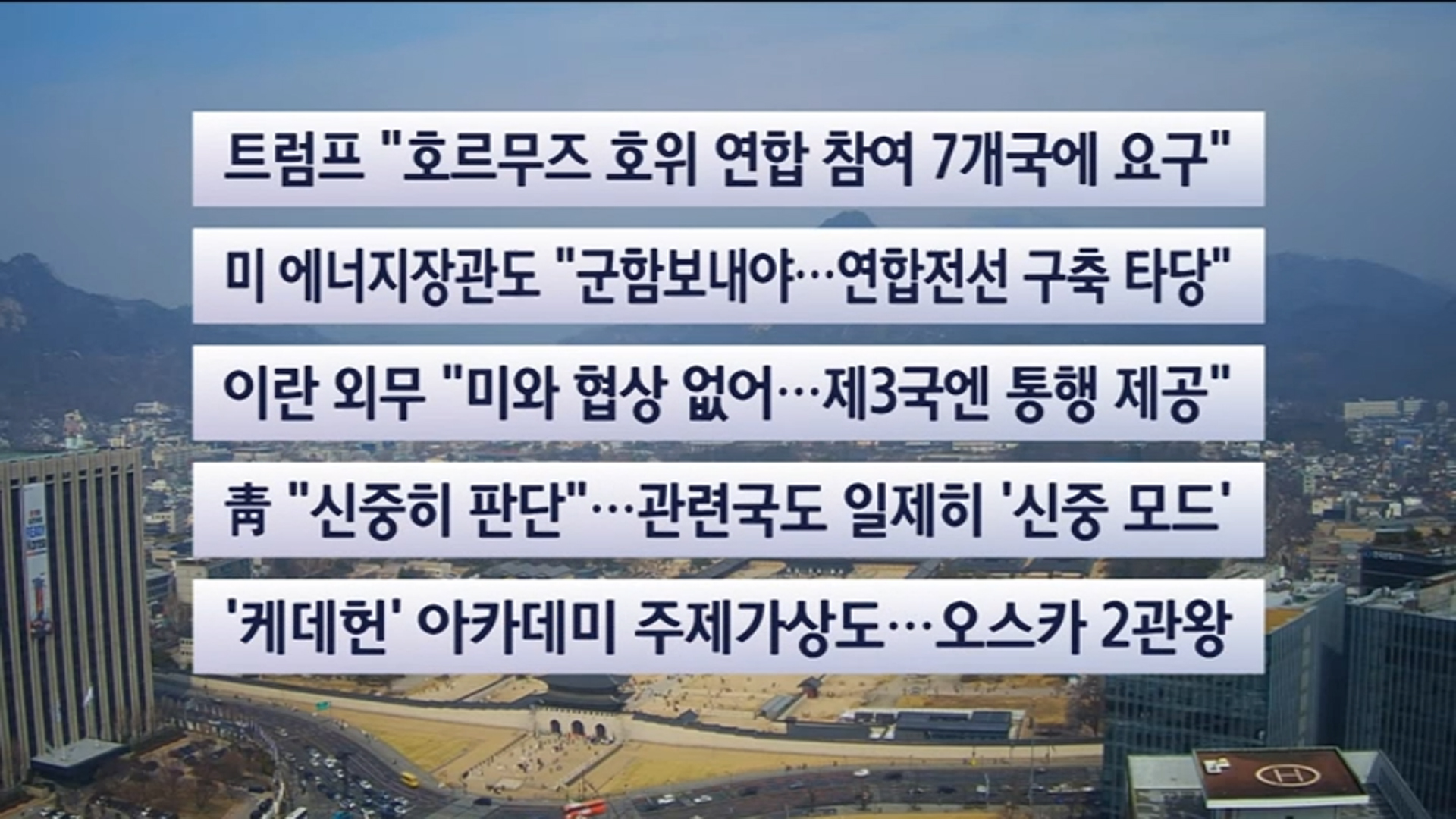 트럼프 대통령은 이란이 봉쇄 중인 호르무즈 해협에서 유조선 통과를 호위할 '연합' 구성을 위해 7개국에 참여를 요구했으며, 긍정적인 반응을 얻고 있다고 밝혔습니다.