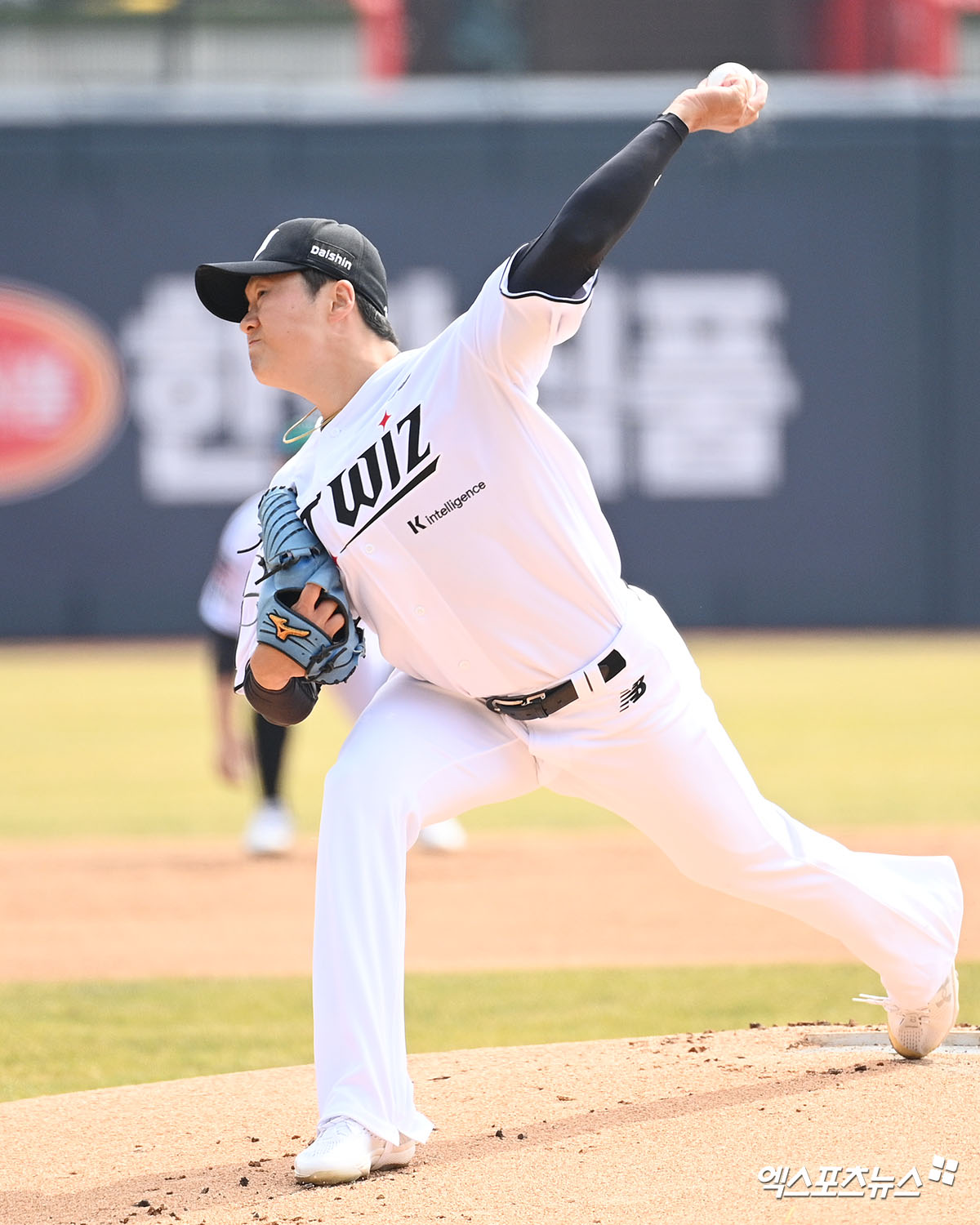 (엑스포츠뉴스 수원, 고아라 기자) 16일 오후 수원KT위즈파크에서 열린 ‘2026 신한 SOL KBO리그’ LG 트윈스와 KT 위즈의 시범경기, 1회초 KT 선발투수 권성준이 공을 힘차게 던지고 있다.