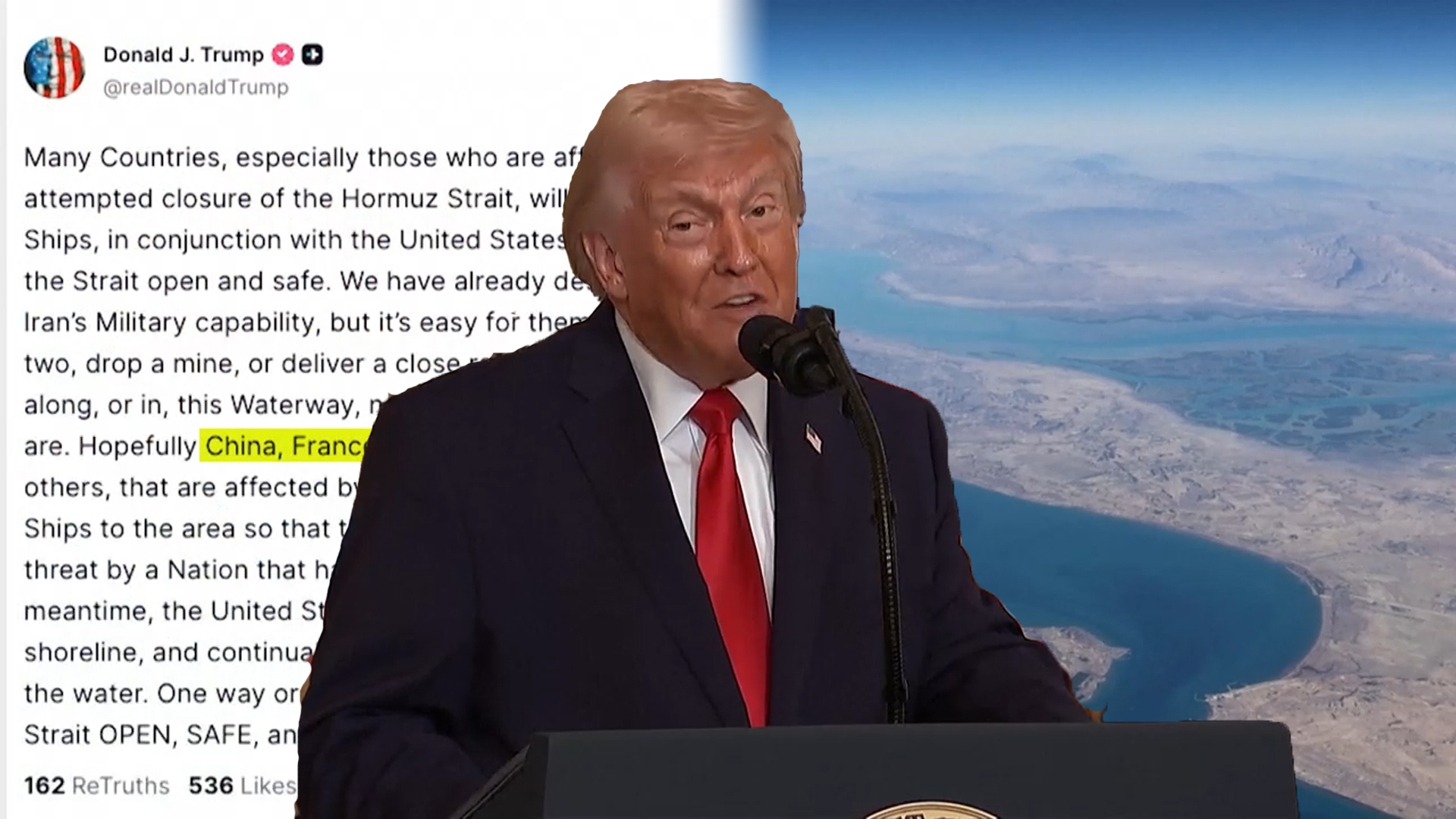 <도널드 트럼프 / 미국 대통령 (현지시간 15일)> "그곳은 그 나라들이 에너지를 얻는 곳이에요. 그러니까 그들도 와서 우리와 함께 그곳을 지키는 데 힘을 보태야 합니다."