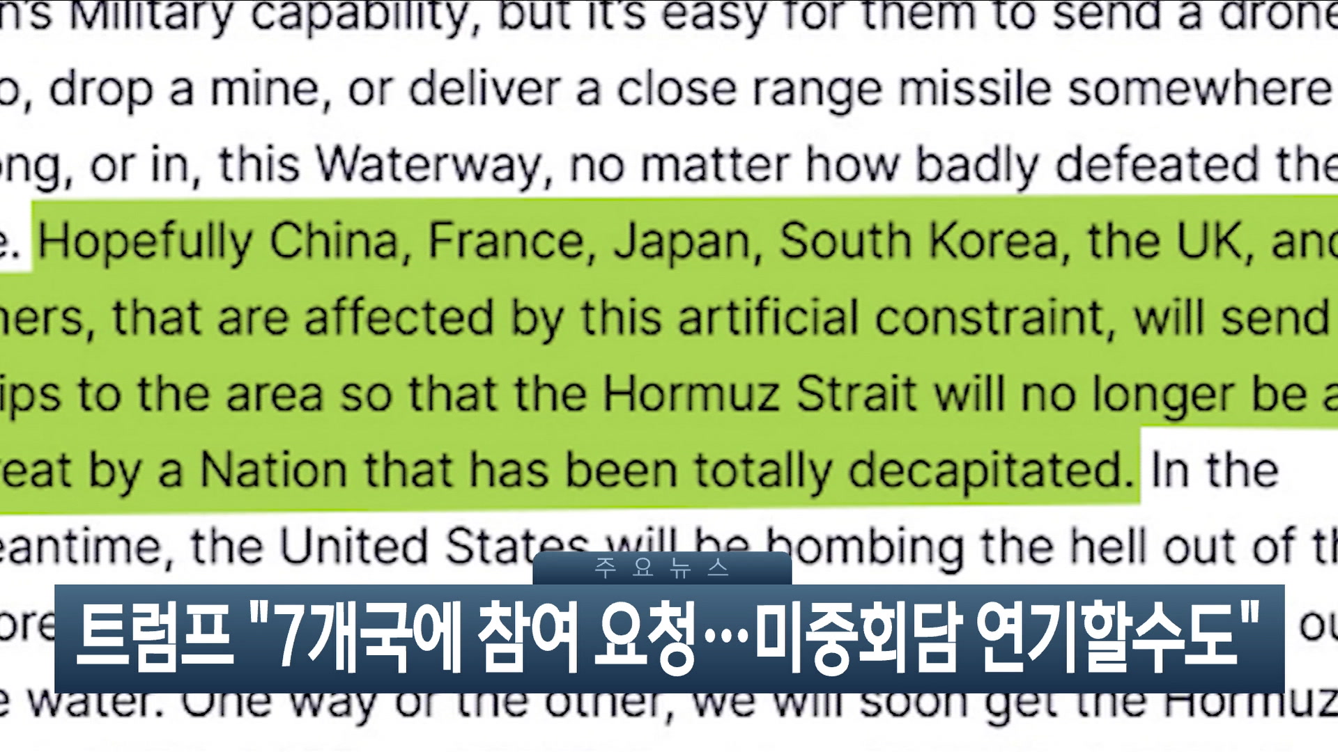 트럼프 대통령이 앞서 한국 등 5개국에서, 더 늘어난 7개국에 호르무즈 해협 호위 참여를 요청했다고 말했습니다.