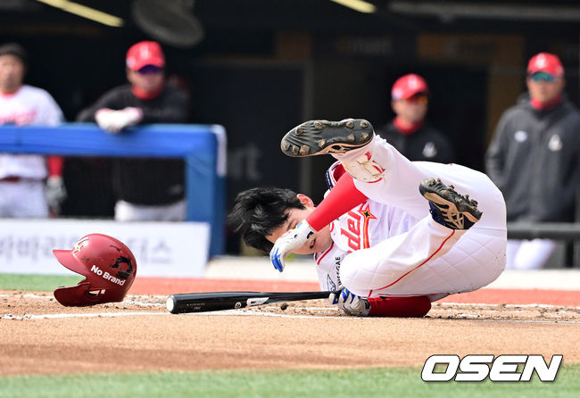 4회말 무사에서 SSG 김성욱이 삼성 최원태의 몸쪽 높은 볼에 놀라고 있다. 2026.03.16/ jpnews@osen.co.kr