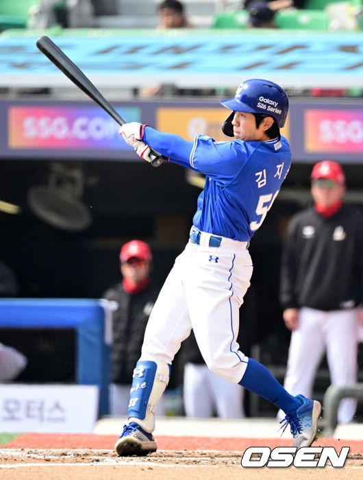 5회초 2사에서 삼성 김지찬이 2루타를 날리고 있다. 2026.03.16/ jpnews@osen.co.kr