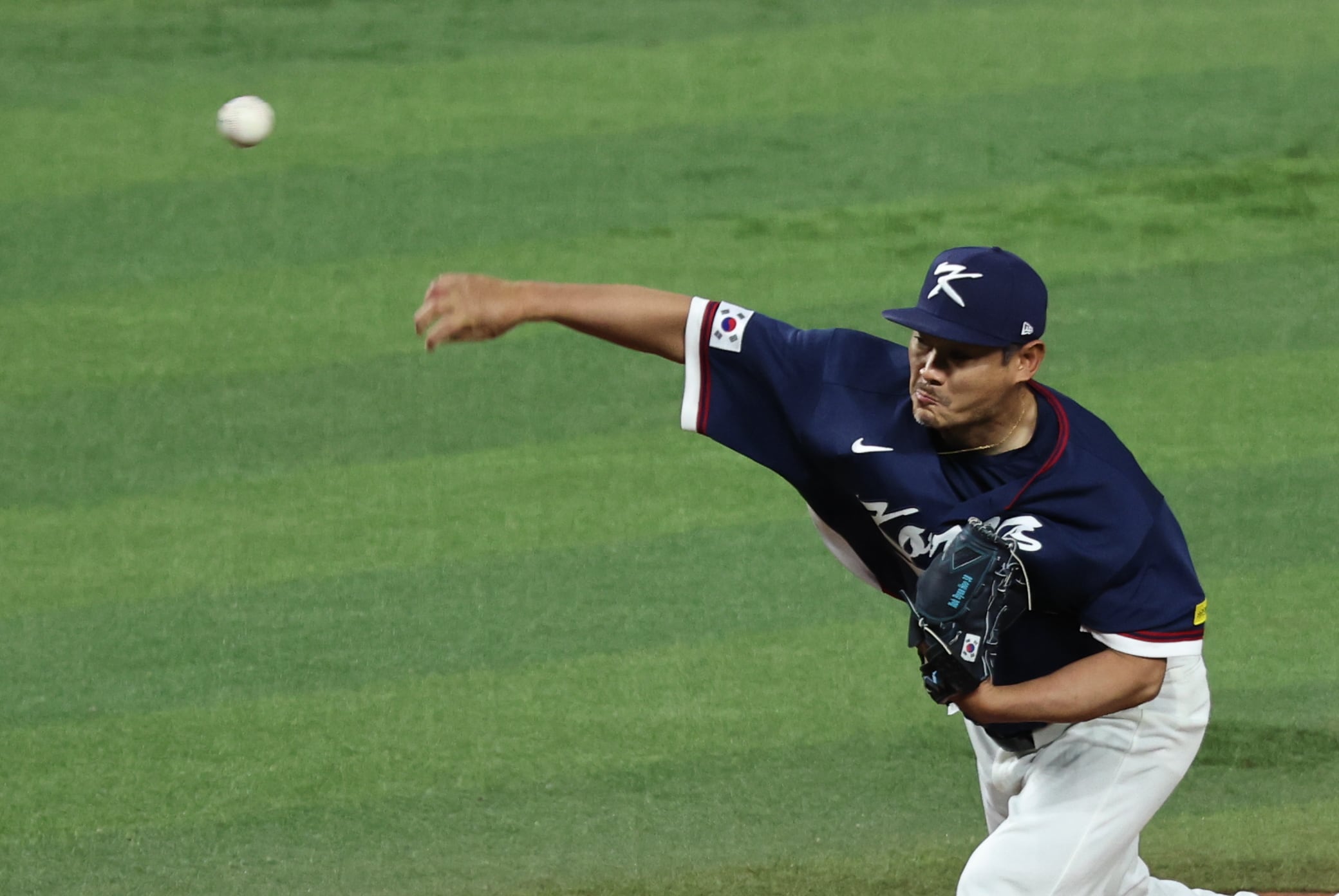 지난 13일 오후(현지시각) 미국 플로리다주 마이애미 론디포파크에서 열린 2026 월드베이스볼클래식(WBC) 8강전 대한민국과 도미니카공화국의 경기. 대한민국 노경은이 2회말 2사 1,2루 상황에 등판해 힘차게 공을 던지고 있다. /뉴스1 |